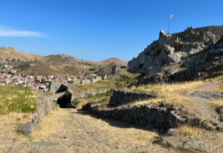 Zum Höhlenheiligtum kommt man nur zu Fuß, es hat durchaus etwas Magisches. In Myrina finden sich auf einem Felsen über dem Hafen Festungsreste, die man natürlich auch nur zu Fuß erreicht - tolle Ausblicke. Die „kleine Sahara“ muss man gesehen haben, und die vulkanischen Figuren auch. In Poliochni ganz im Osten wird die älteste Stadt Europas (!) ausgegraben - sie lag direkt gegenüber von Troja. Und im Nordosten kann man die Reste der einst mächtigsten Handelsstadt der Nordostägäis Hephaistia besuchen, von der vor allem ein römisches Theater erhalten blieb.